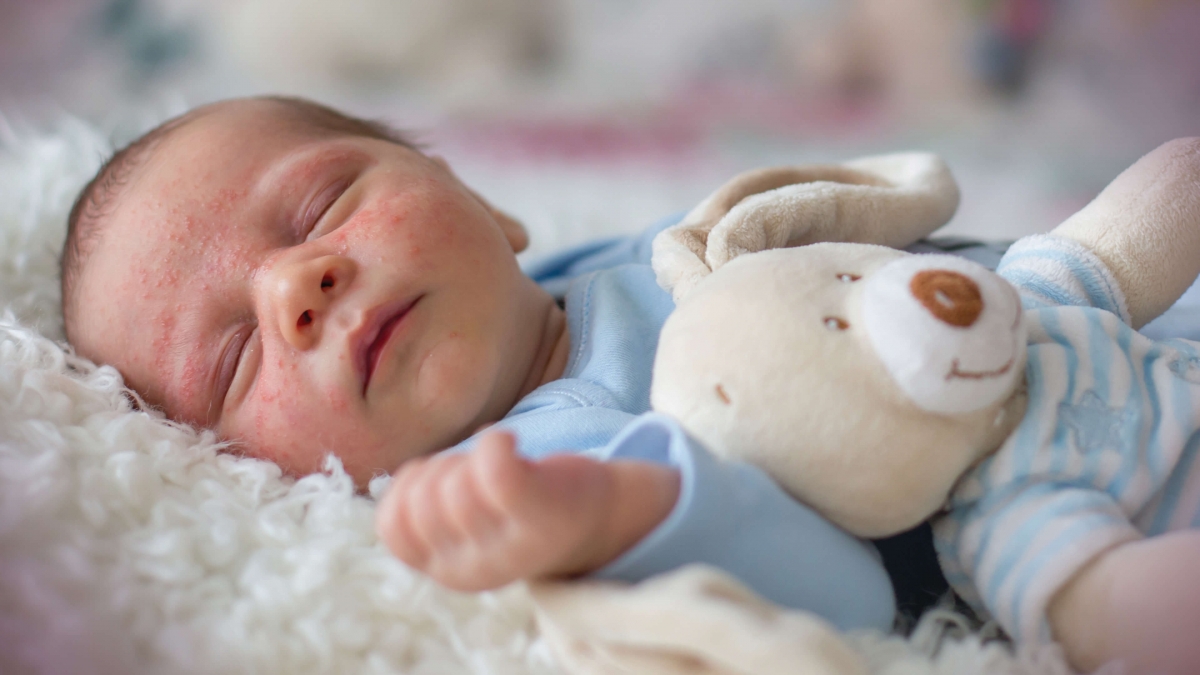 Simptomele acneei la bebeluși