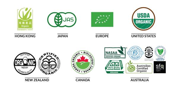 Pentru produsele ecologice certificate în alte părți ale lumii logo-urile sunt următoarele: