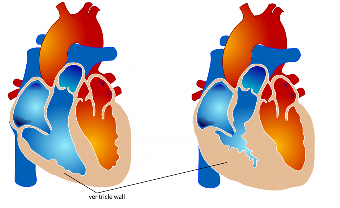 Când hipertrofia se produce la nivelul inimii, mușchiul cardiac mai gros poate pierde în timp elasticitatea. În cazul ventriculului drept, acest lucru îl face să se lupte să pompeze sânge spre plămâni pentru a fi oxigenat.
