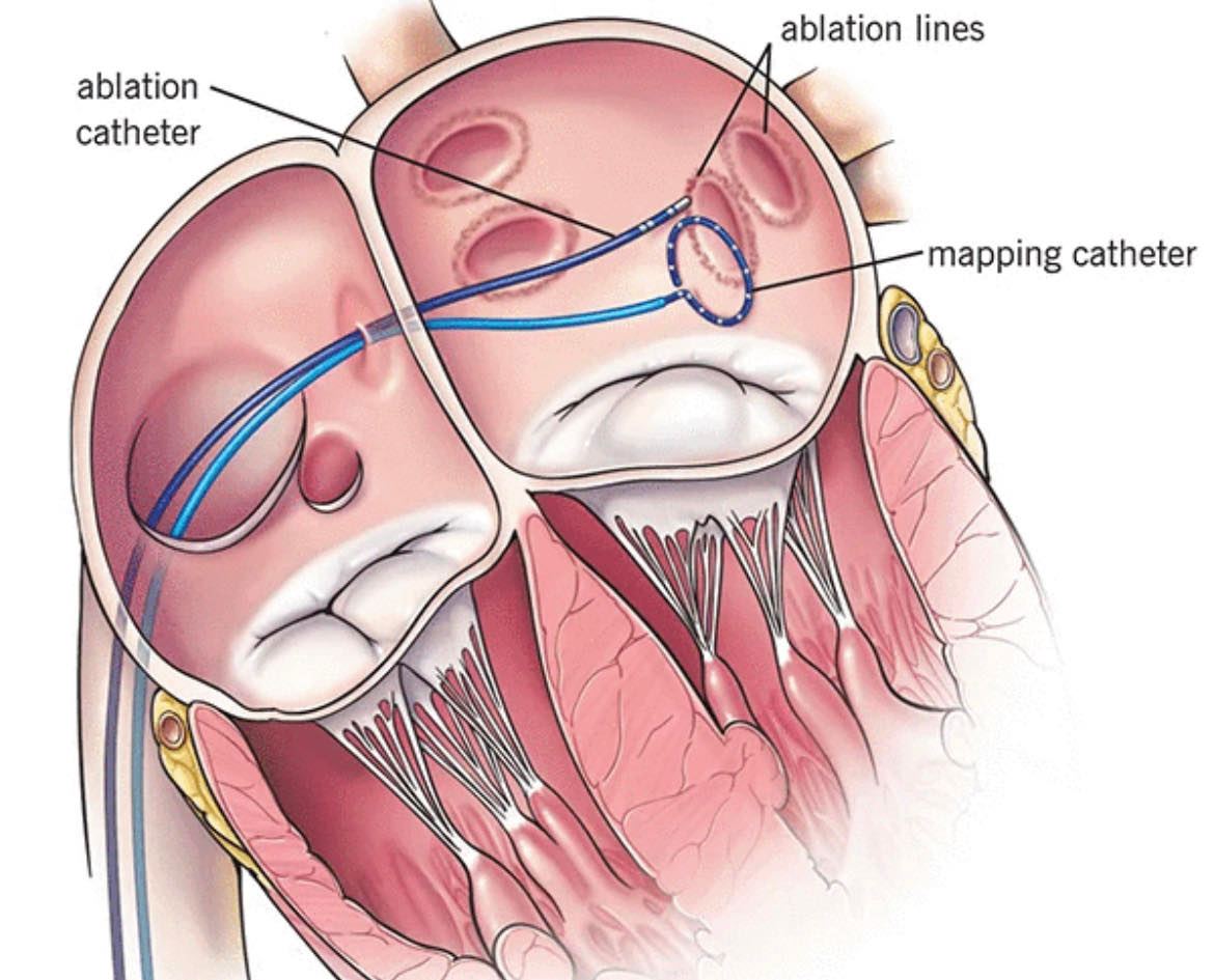 Medicul va muta cateterele din camera superioară dreaptă a inimii în camera superioară stângă a inimii, unde se conectează venele pulmonare. Se utilizează căldură (energie de radiofrecvență) sau frig extrem (crioablație) pentru a crea mici cicatrici în zona țintă și a bloca ritmurile cardiace neregulate. De obicei, fiecare dintre cele patru vene pulmonare este tratată în timpul izolării venelor pulmonare.