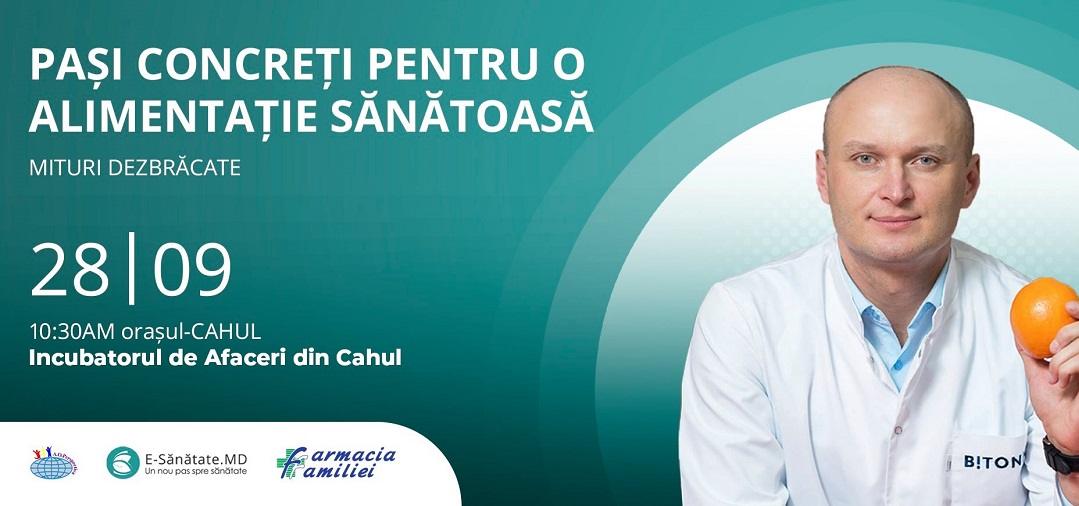 Doi dintre cei mai buni nutriționiști din Moldova vin la Cahul să dezmintă cele mai înrădăcinate stereotipuri alimentare. Platforma E-Sănătate și AO Perspectiva invită, sâmbătă, pe 28 septembrie 2019, toți doritorii de a cunoaște adevăruri despre alimentație sănătoasă la un atelier pe tema: „Pași concreți în alimentația sănătoasă”. Mituri Dezbracate la Cahul.