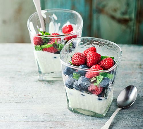 O porție de fructe cu semințe sau nuci și iaurt natural, reprezintă o gustare ușoară, dar sățioasă pentru dimineață sau după-amiază. Este gata în mai puțin de cinci minute și are un nivel scăzut de calorii, nu conține gluten și poate oferi necesarul de nutrienți organismului.