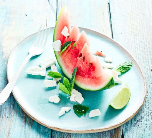 Combinarea aromelor de pepene verde, mentă și brânză va produce o gustare răcoritoare de vară. Aceasta, de asemenea, poate fi savurată împreună cu prietenii
