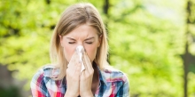 Rinita alergică este cunoscută sub numele de febra fânului. Simptomele obișnuite includ strănutul, nasul înfundat, ochii apoși și o durere în gât. Posibilele surse declanșatoare includ undele plante, polen, acarieni de praf, gândaci, fum de țigară, parfum.
